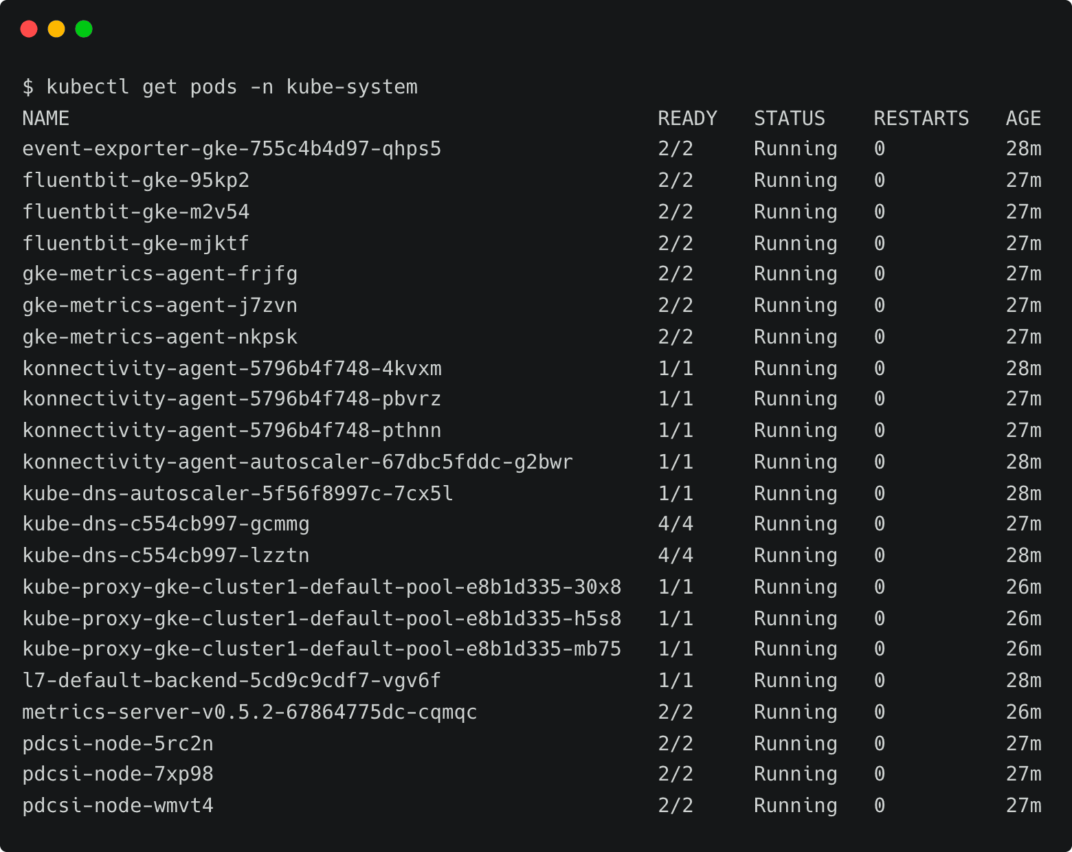 Let’s try to list all the pods running in the kube-system namespace.