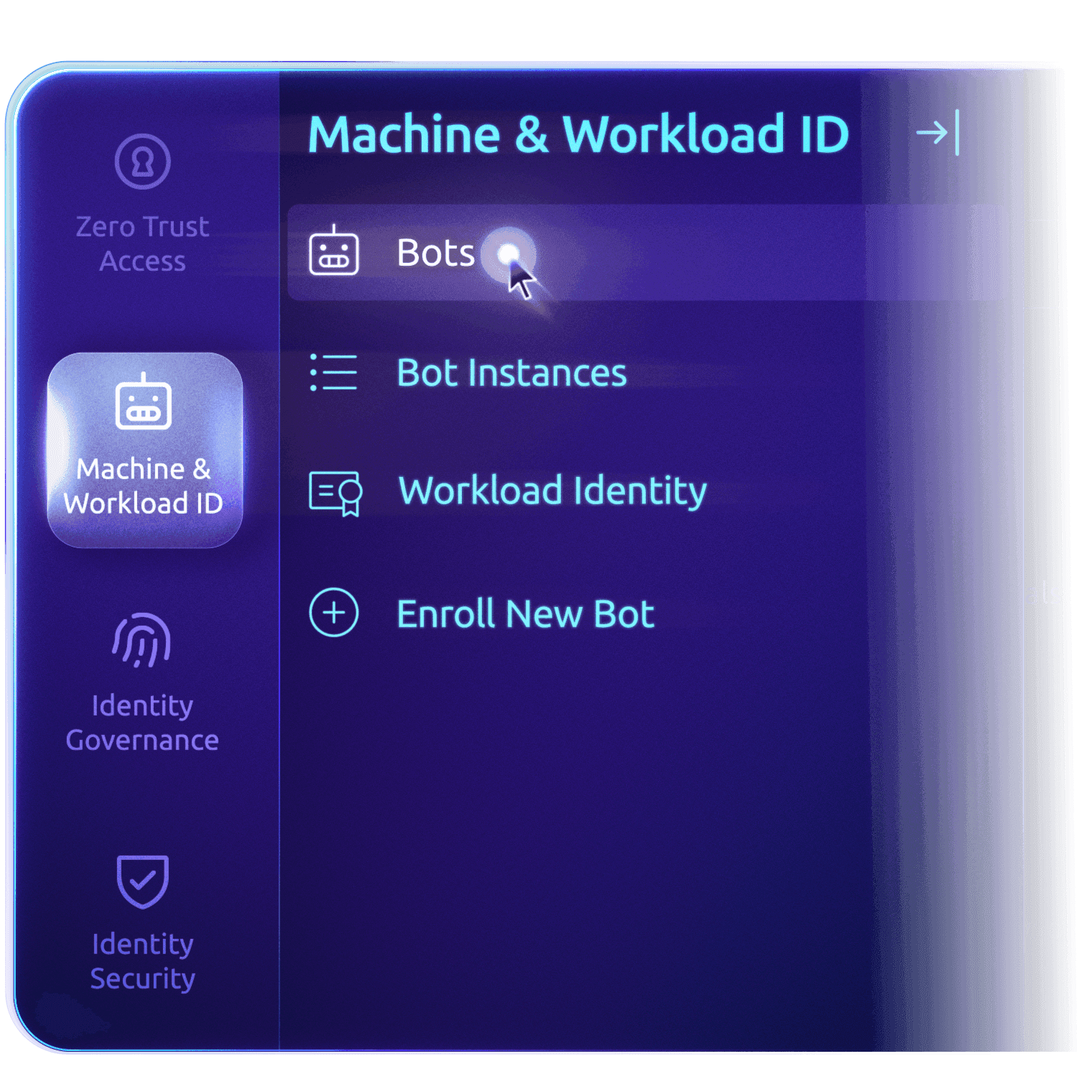 Manage human and non-human identities together from a single platform without vaults or secrets.