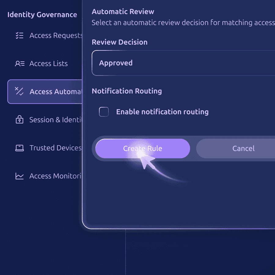 Unify identity governance and identity security with access control — automate governance, lock users, and detect hidden access path risks, for humans, machines, and agents. Restrict access to approved devices, moderate sessions, automate role management with access lists, identify realtime identity risks, and lock identities across all infrastructure.