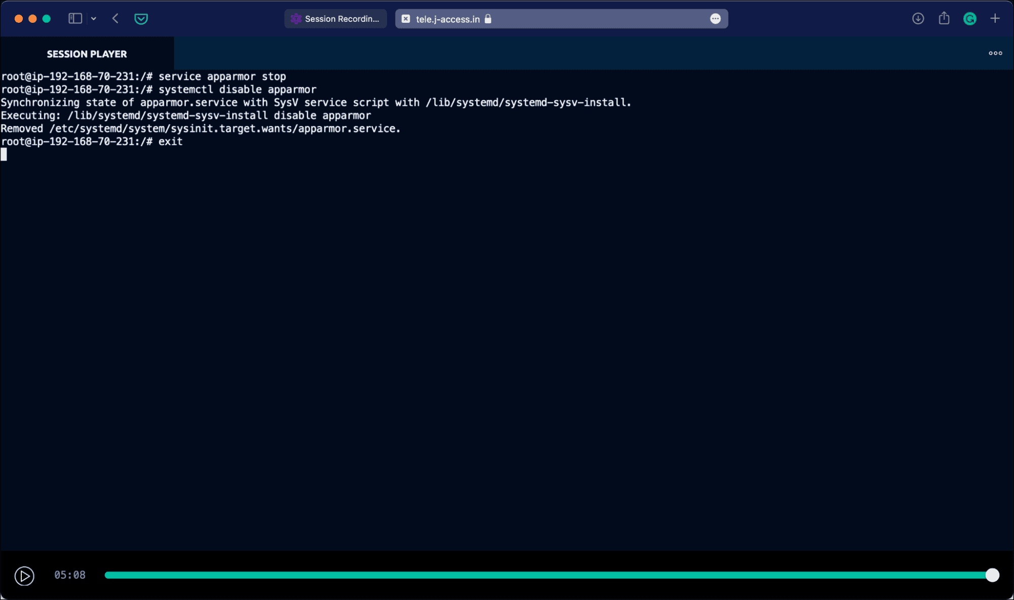 Dave can also play the session video within the terminal. For this, he copies the session ID from the web UI and runs the below command: